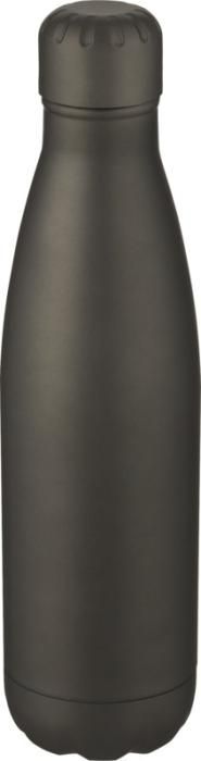 Vakuumisolert flaske i rustfritt stål med et ikonisk design. Isolert 18/8 rustfritt stål holder drikker varme eller kalde i flere timer. Testet og godkjent i henhold til tysk lovgivning for matsikkerhet (German Food Safe Legislation/LFGB), og testet for ftalater i henhold til REACH forskrifter. Denne slanke vannflasken har en base som passer i de fleste koppholdere, og er et perfekt profileringsprodukt. Kapasitet 500 ml. Håndvask anbefales. Kommer i gaveeske av resirkulert papp. Rustfritt stål.