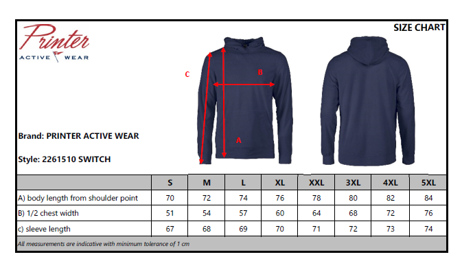Hettegenser i microfleece. Kengurulomme i front og elastisk snor i hetten. 100% polyester i 180 g/m2. Vaskes på 40%, tåler ikke tørketrommel.