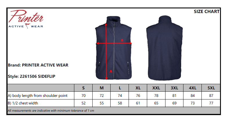 Dobbeltsidig børstet fleecevest. Lommer i front og kontrastfargede glidelåser. Elastisk tape i nederkant. 100% polyester i 280g/m2. Vaskes på 40 grader, tåler ikke tørketrommel.