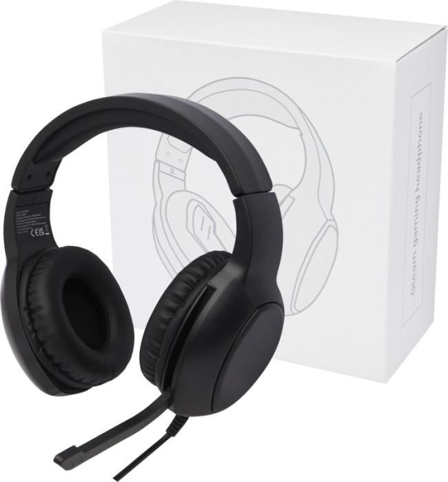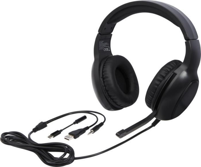 Gleam spill/gaming hodetelefonene leverer stereolyd av høy kvalitet med en førsteklasses innebygd mikrofon. Den inkluderer en kabel på 2 meter med en 3,5 mm Aux spiss og en USB-A kontakt. 3,5 mm Aux inngangen gir lyd og mikrofon når den er koblet til en datamaskin eller mobil enhet. En Aux til Type-C adapter er inkludert for enheter med Type-C innganger. Med de medfølgende adapterne og den innebygde kabelen er spillhodetelefonene kompatible med alle større PC'er, bærbare PC'er, mobiltelefoner, nettbrett, PlayStation og Nintendo Switch. Lett å sette opp uten driverkrav. Den innebygde volumkontrollen på ørekoppene gjør det enkelt å justere volumet, mens den ekstra polstringen i ørekoppene og det justerbare hodebåndet gjør dem behagelige å bruke. Kan lasergraveres på ørekoppene med lysende logo. Leveres i en gaveeske som er laget av bærekraftige materialer. ABS plast.