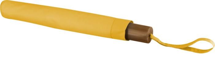 Enkel å oppbevare, det er absolutt tilfellet med Oho 20" paraplyen. Paraplyen er sammenleggbar og kommer med en pose som beskytter den under oppbevaring. Denne budsjettvennlige paraplyen har en metallramme og et lite, lett håndtak som passer godt i hvilken som helst hånd. Takket være størrelsen når den er sammenbrettet passer den perfekt i en (hånd)veske. Oho paraplyen er laget av slitesterk polyester, har store dekorasjonsflater og er tilgjengelig i forskjellige farger. Polyester.