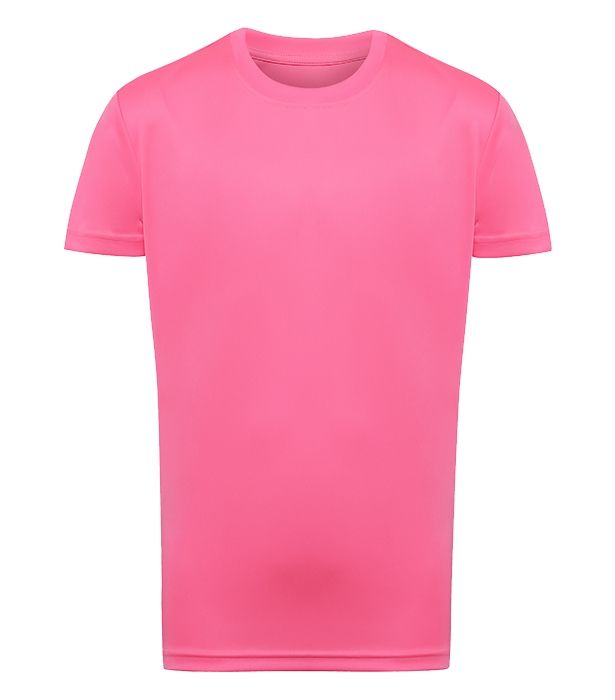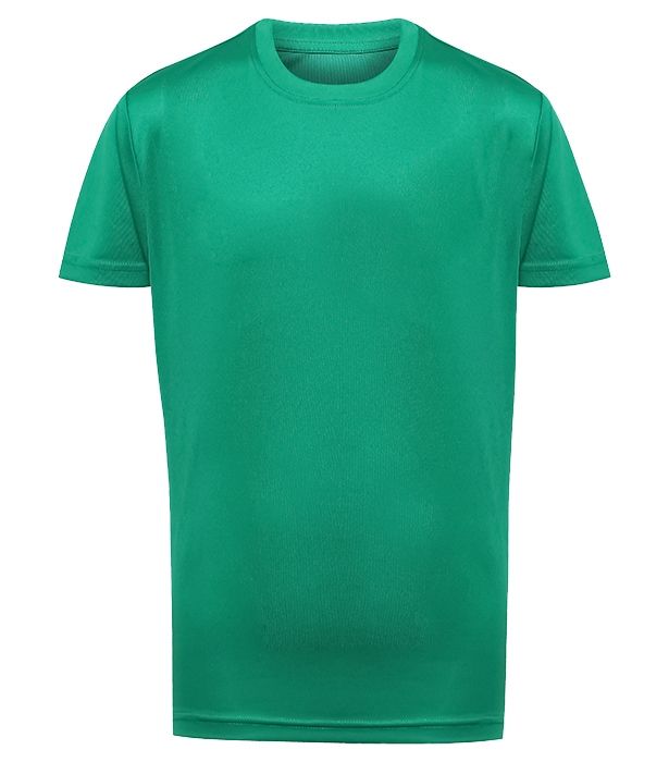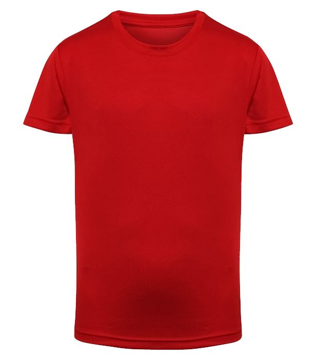 Teknisk T-shirt for barn med fukttransporterende egenskaper. Glatt ytterstoff. Lett og rasktørkende stoff. Solskydd UPF40. 100% polyester i 135 g/m2. OEKO-tex merket. Vaskes på 40 grader. Leveringstid ca 2 uker.