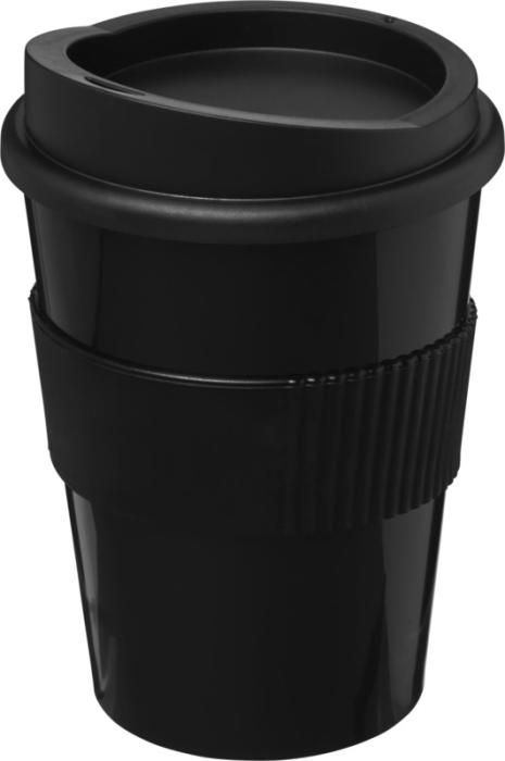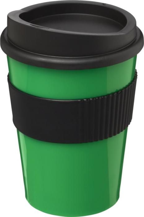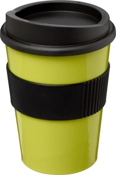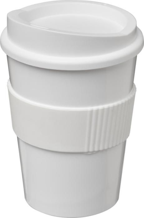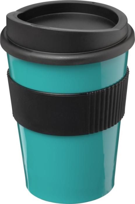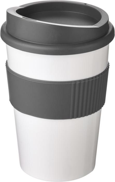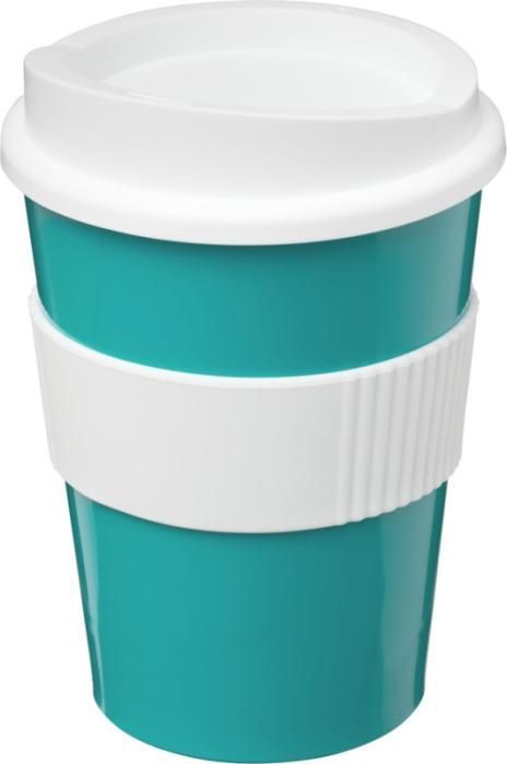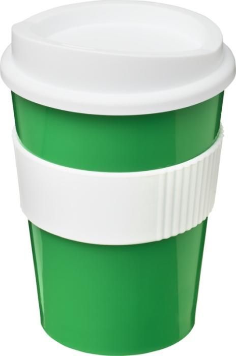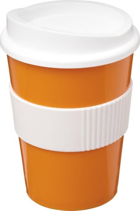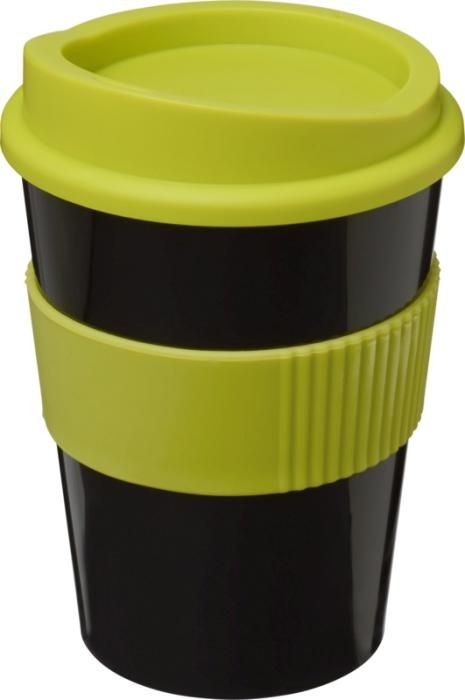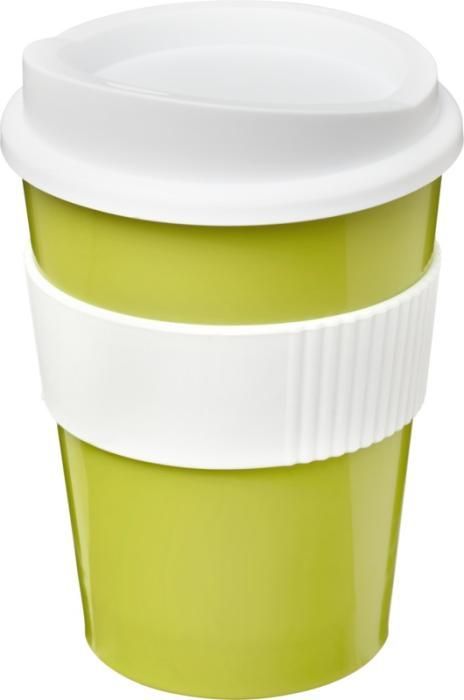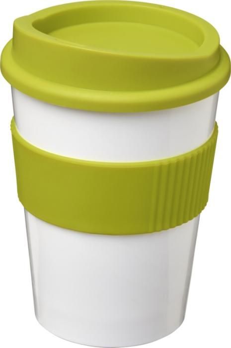 Enkeltvegget kopp med silikonhåndtak og trykklokk. Volumkapasiteten er 300 ml. Miks & Match farger for å lage din perfekte kopp. Produsert i Storbritannia. Pakket i komposterbar pose. Uten BPA. PP plast, Silikonplast, PE plast.