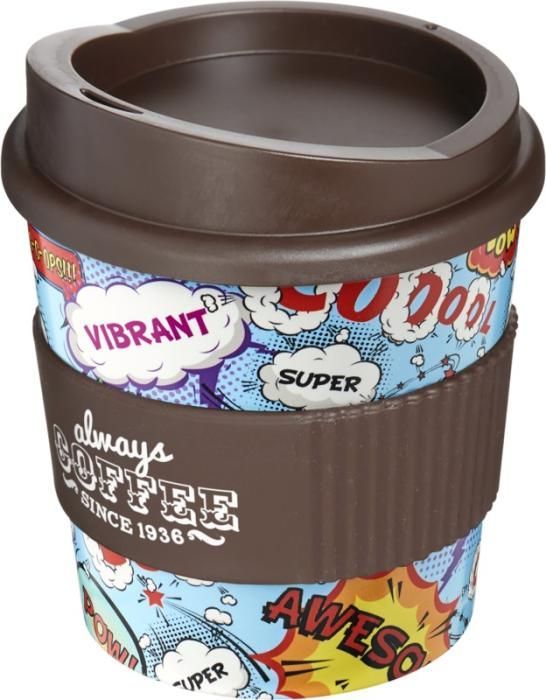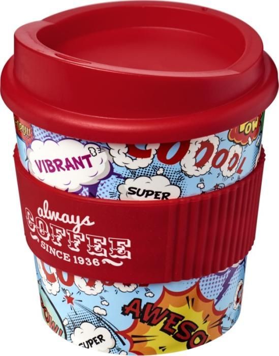 Enkeltvegget kopp med silikonhåndtak og trykklokk. Passer under de fleste kaffemaskiner. Koppen har heldekkende fargedesign støpt inn i produktet. Overholder EN12875-1; tåler oppvaskmaskin og kan brukes i mikrobølgeovn. Volumkapasiteten er 250 ml. Miks & Match farger for å lage din perfekte kopp. Produsert i Storbritannia. Pakket i komposterbar pose. Uten BPA. PP plast, Silikonplast, PE plast.