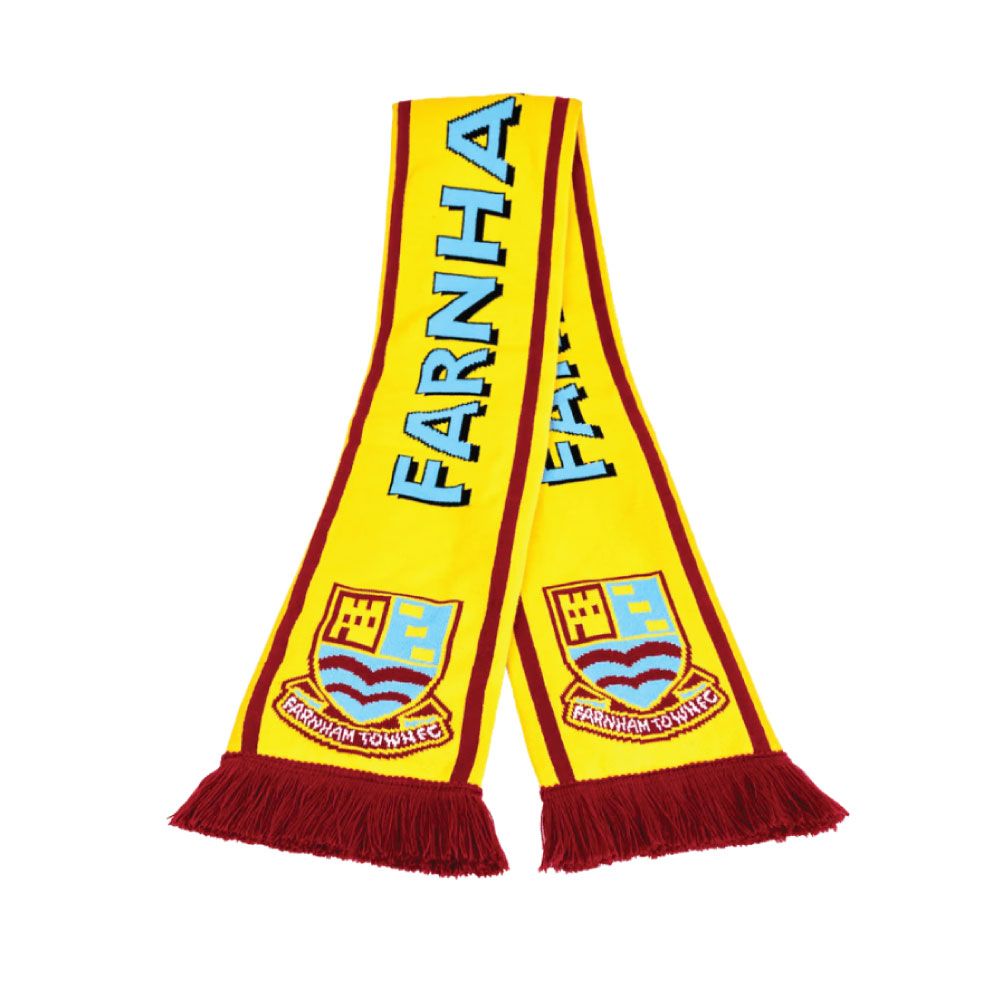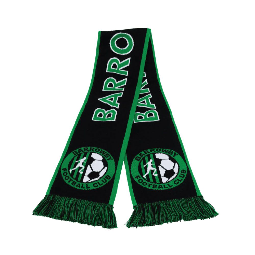 Supporterskjerf i strikket akryl med litt lycra. Skjerfet er varmt, ekstremt mykt og veldig behagelig å ha på. Kan fås i ulike design på de to sidene. Opptil 7 farger i selve skjerfet og opptil 3 farger i frynser. Kommer i tre ulike størrelser.