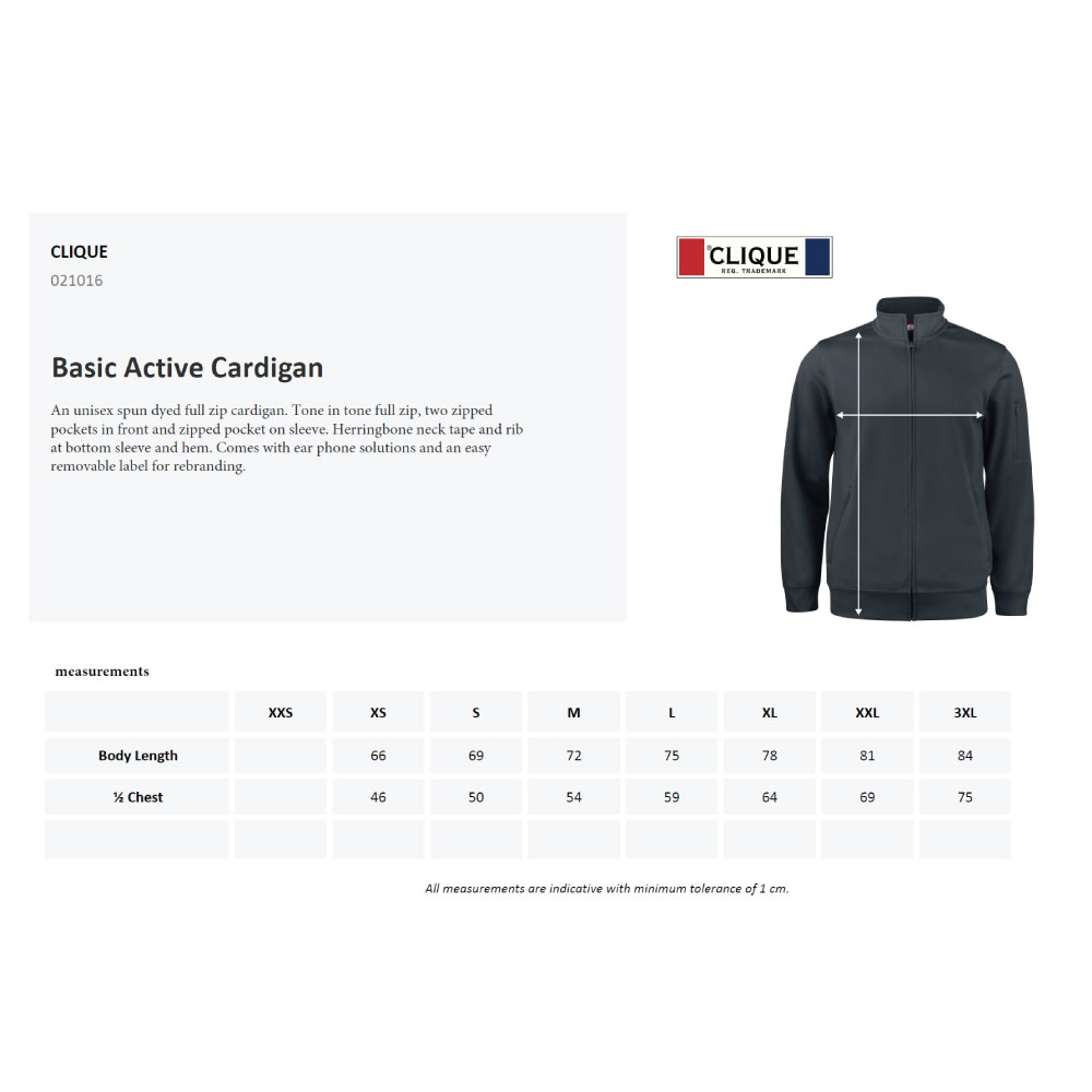 Cardigan med ton-i-ton glidelås i 100% polyester. 280gm2. To sidelommer og lomme med glidelås på ermet. Herringbone nakkebånd og ribb i nederkant og ermavslutning. Tilpasset for hodetelefoner. Spun dyed. Vaskes på 60 grader. OEKO-tex merket.