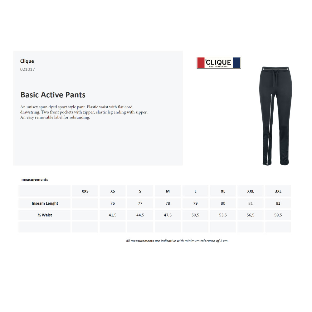 Sporty bukse i unisexmodell i 100% polyester. 280g/m2. Elastisk snøring i livet. To sidelommer med glidelås. Elastsk benavslutning med glidelås. Spun dyed. Vaskes på 60 grader. OEKO-tex merket.