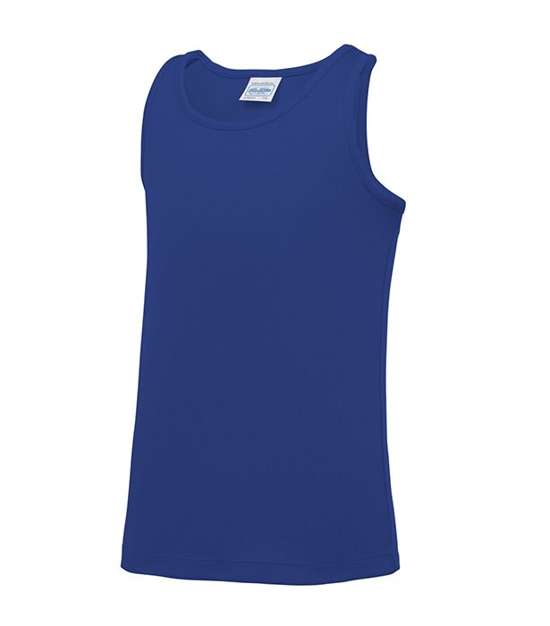 Teknisk singlet til barn i 100% polyester. 140 gr/m2. Rundet litt nedentil bak. Holder deg tørr inntil kroppen. OEKO-Tex og WRAP merket. Vaskes på 30 grader. Leveringstid ca 2 uker.
