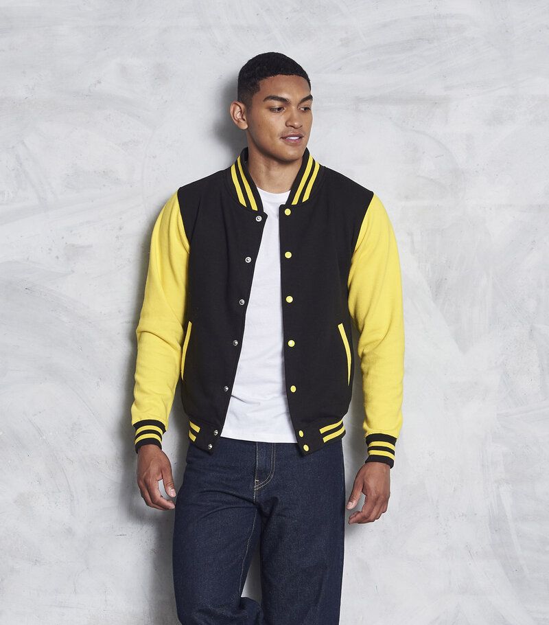 Amerikansk inspirert Varsity-jakke. Laget av et slitesterkt stoff som tåler vask etter vask, uten å miste fargen. Jakken har stretchy sømmer for behagelig passform. Produktet er WRAP sertifisert, som vil si at produksjonen er samfunns -og miljømessig bærekraftig. 80% bomull, 20% polyester. Vaskes på 30 grader, tåler ikke tørketrommel.